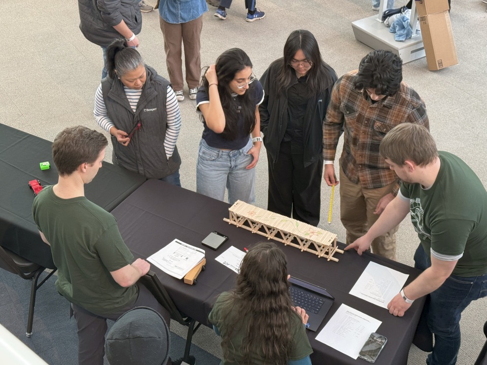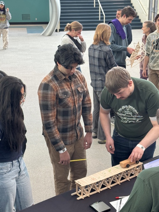 Our team approached the regional Popsicle Stick Bridge competition like any real design-build project. After researching historical truss failures, we iterated through Pratt, Warren, and Howe variations, ultimately selecting a modified K-truss that balanced tension/compression members with the limited stick inventory.